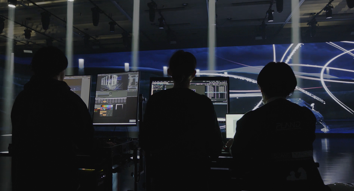 シミュレーションで作成したデータをもとに、現場におけるオペレーションシステムを構築。照明や映像、音響の切り替えを一元管理し、演出を円滑に進行できるオペレーションサポートを行います。リアルタイム処理が可能なため、現地調整も柔軟な対応が可能になる。